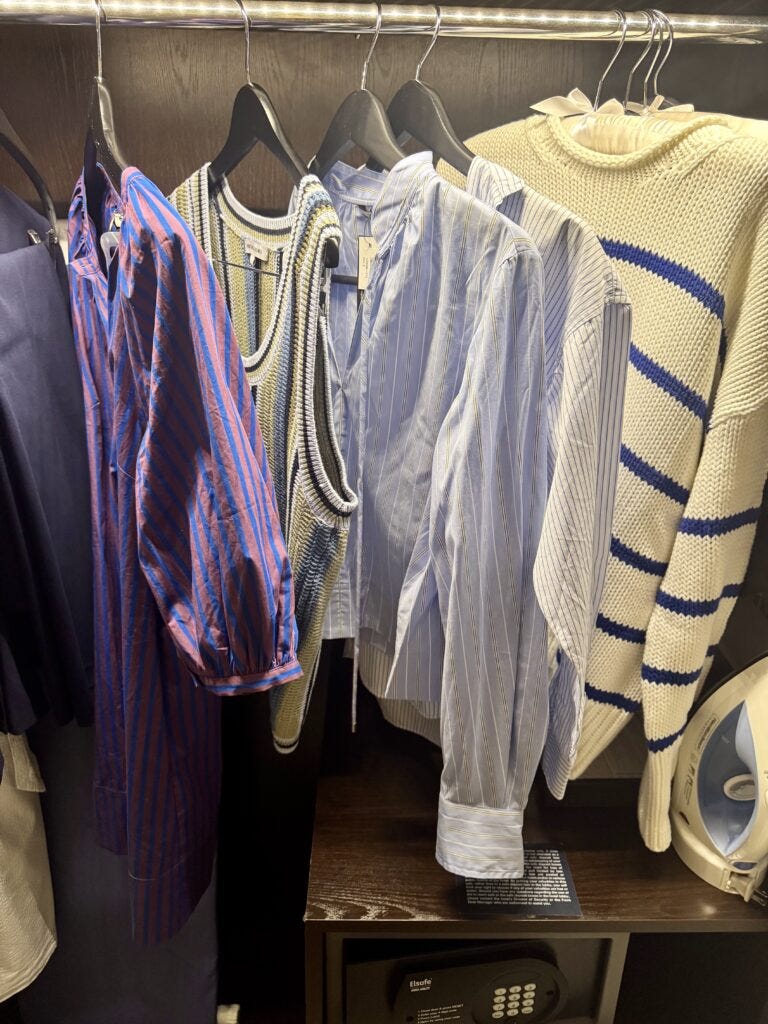 On a work trip recently realizing every single clothing item I packed was some type of stripe. Also, yes Mom, I know it all needs ironing - lol.